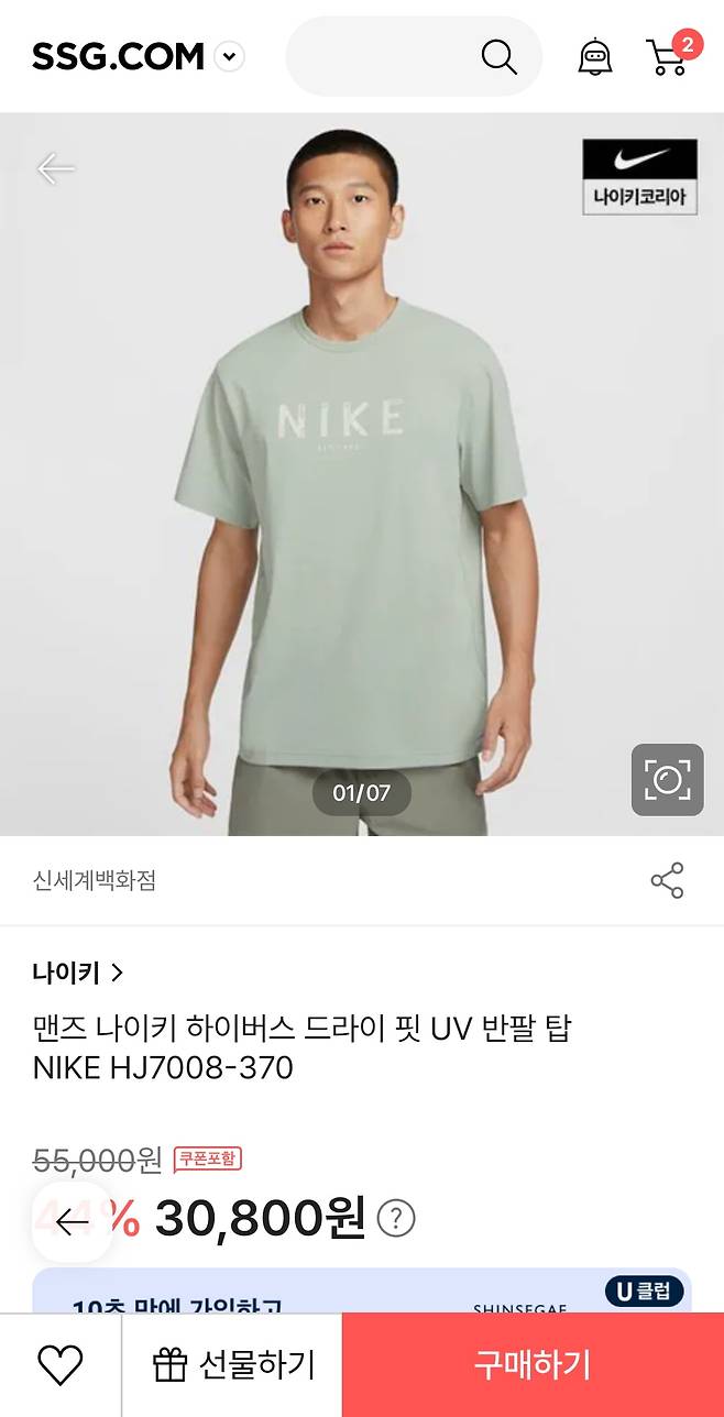 마찬가지 지난 9월에 구매한 나이키 티셔츠입니다