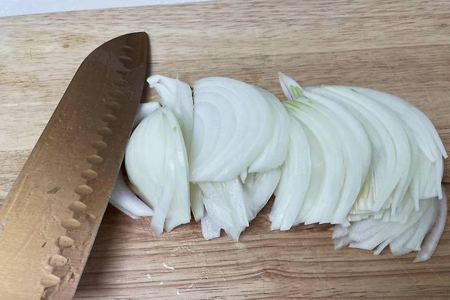 그러면 평소보다 훨씬 맵지 않게 양파를 썰 수 있습니다.