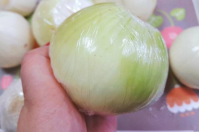 껍질 벗긴 양파는 비닐랩을 감아 주시고요