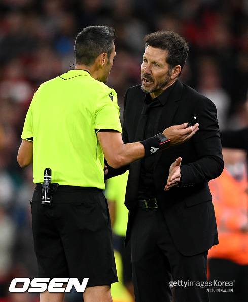 리버풀 팬의 비매너? '퇴장' 시메오네의 해명, "경기 내내 욕설 퍼부었다"