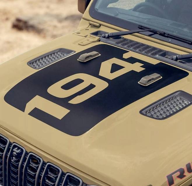 여기에 1941 데칼이 보닛 위에 적용돼, 지프가 출발한 해를 상징적으로 기념한다. 전면부의 전통적인 그릴 디자인과 블랙 인서트, 견고한 오프로드 범퍼는 강인한 인상을 자아내며, 외관 전체에서 정통 지프의 분위기를 강조한다.