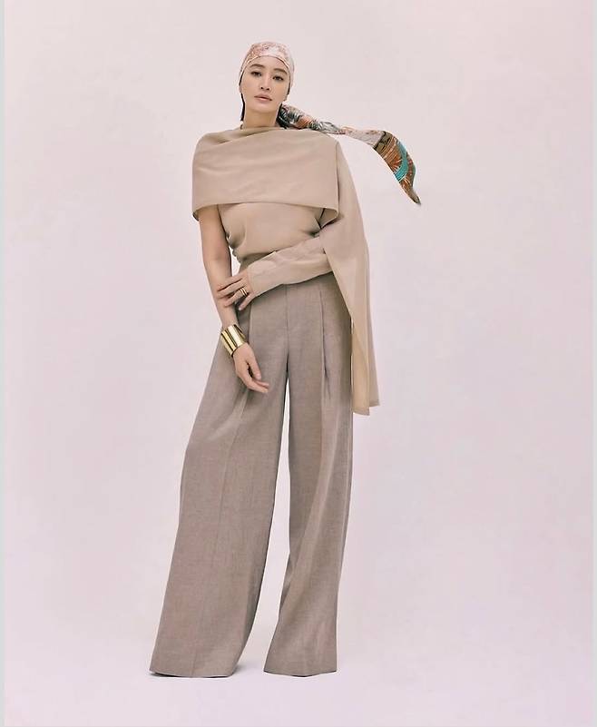 베이지 톤의 미니멀한 톤온톤 룩을 선보이며, 명품보다 더 명품 같은 스타일링으로 시선을 모았습니다.