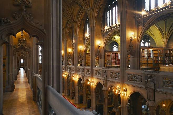 영국의 3대 도서관 중 하나인 존 라이랜즈 도서관은 1900년에 개관하여 현재까지 운영되고 있는 빅토리아 고딕양식의 아름다운 도서관입니다. 영국의 기업가이자 자선가 존 라이랜즈(John Rylands, 1801~1888)를 기리기 위해 그의 아내 엔리케타 아우구스티나 라이랜즈(Enriqueta Augustina Rylands, 1843~1908)가 설립한 공공도서관이죠.