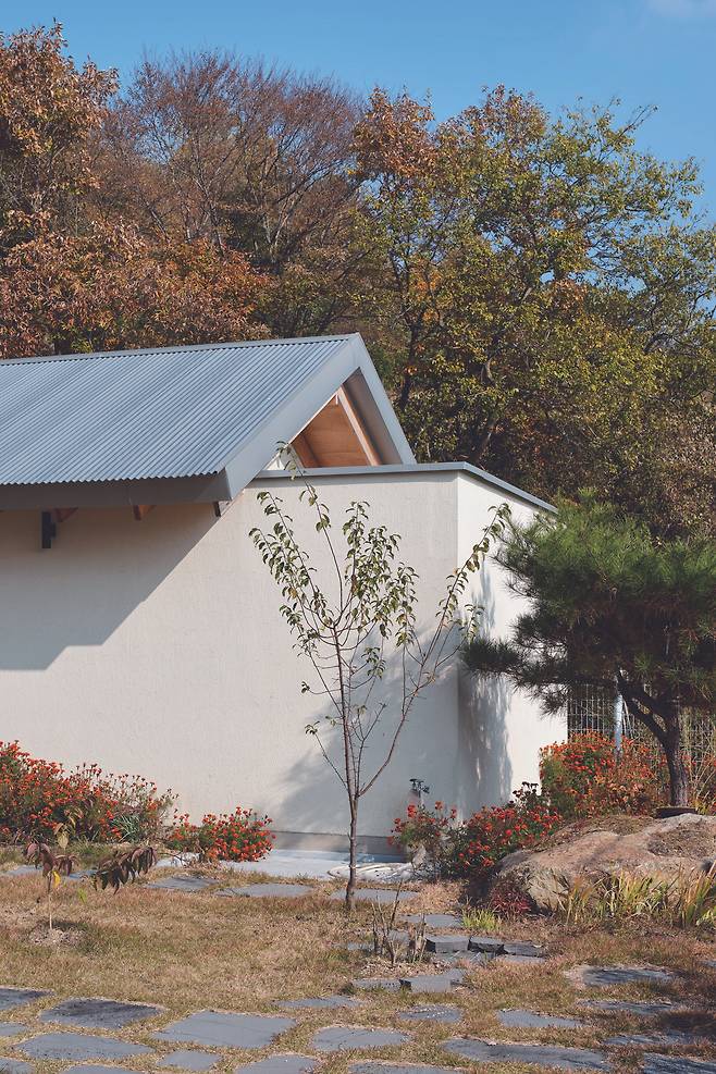 어린 시절 외갓집 처마 끝에 하늘, 햇살, 빗물 등이 떨어지던 모습을 되살려 지붕의 적절한 스케일을 정했다. 이런 지붕은 집에 드나들 때 자연스럽게 지붕 너머 나무와 하늘, 진안군의 자연 요소를 담아내는 배경이 된다.