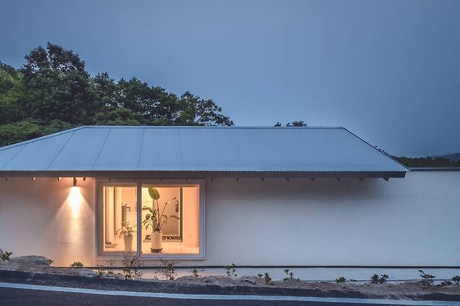 여섯 개의 대지는 약 1.4m의 레벨 차이가 나는 기단을 형성했고 이 기단은 집의 형태를 고민하는 데 중요한 요소가 됐다. 외부로부터 보호받는 내향적인 ‘ㄷ’자와 ‘ㄱ’자 형태에 지형에 순응하는 낮은 박공지붕의 집 그리고 레벨 차이가 존재하는 대지를 이용해 자연 경관을 품는 집이 되고자 했다.