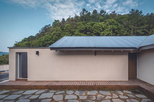 “이곳이 골짜기 지형이어서 바람이 많이 불어요. 근데 이 마당에 들어오면 바람이 들지 않아 너무 편안해요. 대문, 담장이 없어 걱정이기도 했는데 보호받는 느낌도 들고 앞집 지붕이 낮아 전망을 가리지 않아 답답하지도 않고 너무 좋아요.”