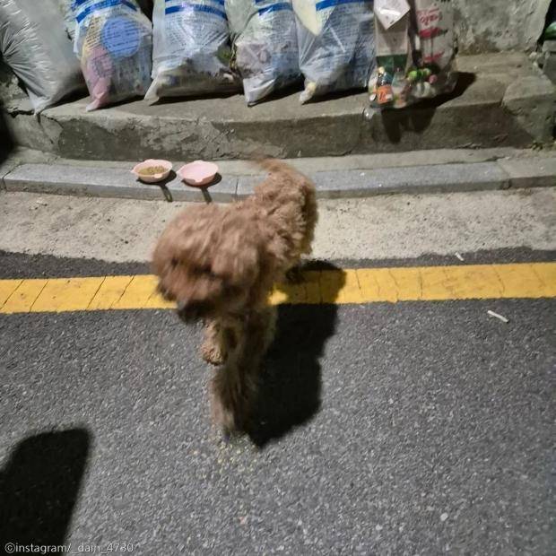 그 뒤로 동네 사람들이 먹을 것을 챙겨준 덕분에 이 푸들은 목숨을 유지할 수 있었단다.