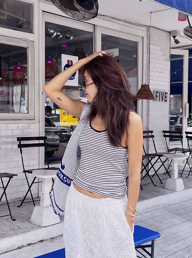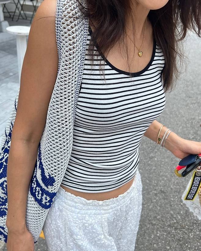 공개한 사진에서 채정안은 다리가 길어 보이는 와이드 루즈 핏의 화이트 팬츠에 스트라이프 민소매 티셔츠를 입고 그물백을 매치한 외출룩으로 시원하면서도 멋스러운 핫섬머 스타일을 완성했다.