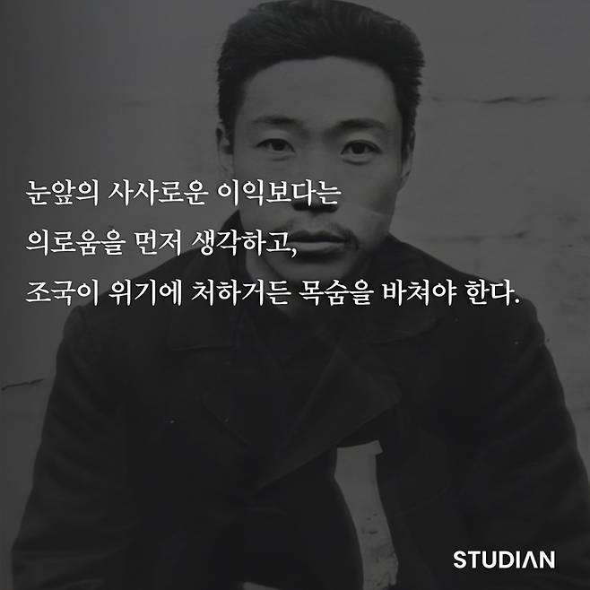 우리나라의 독립을 위해 모든 것을 희생하신 안중근 의사의 명언입니다.