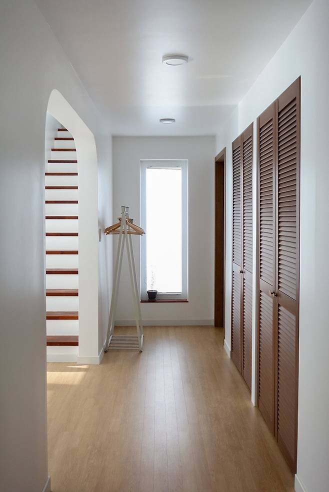 복도식 구조에서 오는 채광을 극대화하고자 픽스창을 활용하고, 계단 아래는 다용도실로 전환했지만, 보일러 이슈로 다시 조정했다. 설계의 모든 과정은 다림질하듯 평탄하지만은 않았다. 그래도 그 혼선의 시간들이 이 집을 더욱 단단하게 만들었다.