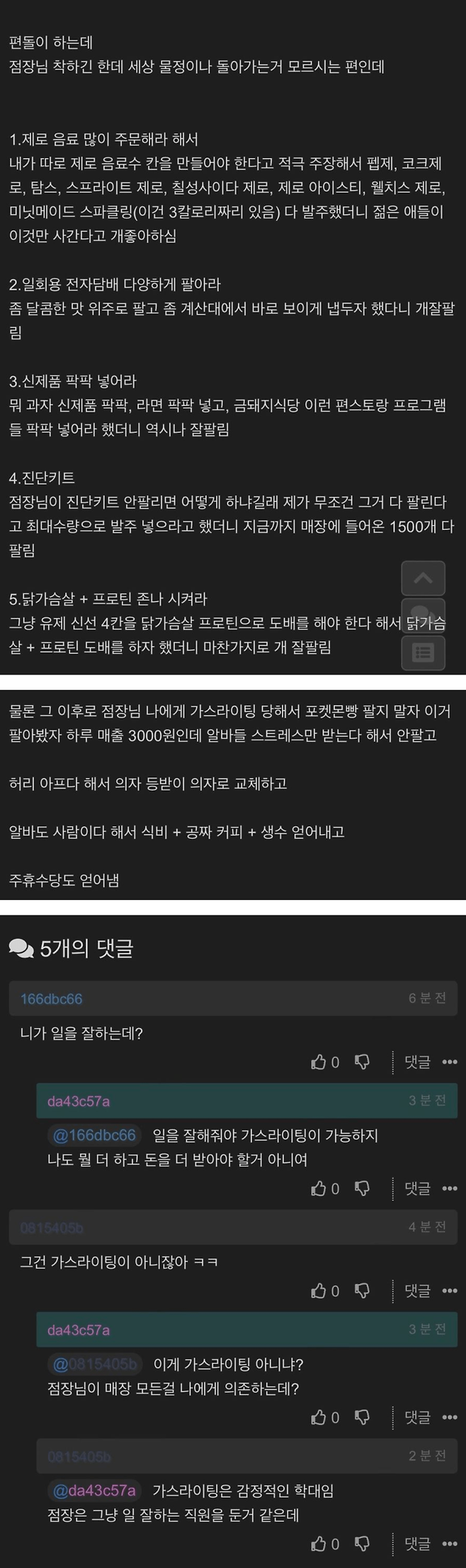 점장 가스라이팅 해놓으니 일하기 편하다는 알바