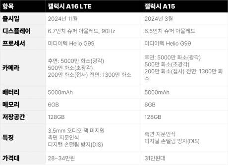 - 갤럭시 A15/16 장단점