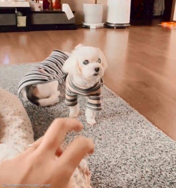 보호자는 "이 영상은 4~5년 전쯤 촬영한 영상"이라며 "설탕이는 눈이 멀기 시작하면서 집 구조를 모두 감각으로 외우고 있었고, 부엌은 항상 엄마나 언니가 많이 있던 장소였다"고 설명했습니다.