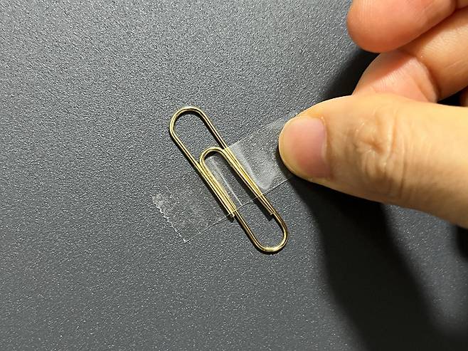 투명한 테이프는 항상 시작점을 찾기가 어려운데요. 이럴 때 클립으로 시작점을 표시해 놓으면 쉽게 뜯을 수 있습니다.