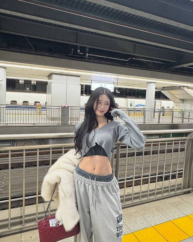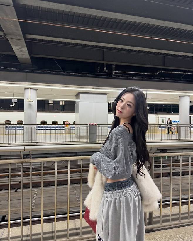 공개된 사진 속 유나는 기차역 플랫폼을 배경으로 회색 크롭 니트 톱을 걸친 채 블랙 이너와 로우라이즈 그레이 트레이닝 팬츠를 매치해 단숨에 눈길을 끌었다.