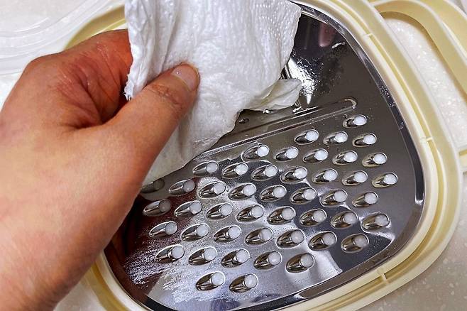 수납통과 함께 가볍게 주방세제로 닦아줍니다.