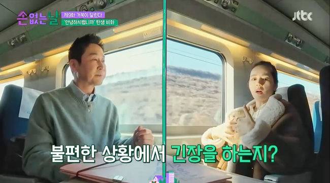 신동엽은 "명절 전에 기차를 타니까 고향가는 느낌도 들고 그런다"라고 말했고 한가인 역시 공감하며 "할머니 집에 가 고 가족들 만나고 그런 느낌"이라고 말했다.