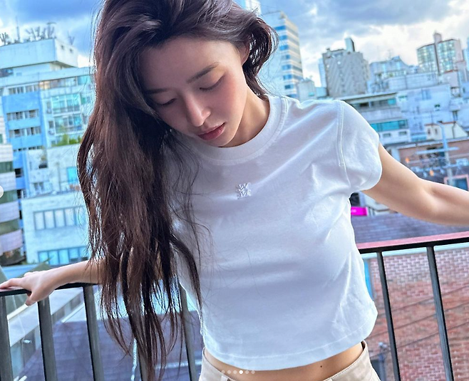 권나라는 172cm큰 키로 크롭티를 완벽소화해 눈길을 끌었습니다.