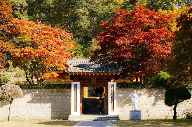 붉고 노란 단풍잎들이 어우러진 모습은 마치 자연이 그린 한 폭의 동화 속에 온 것만 같은 기분이 듭니다. 성지 내의 산책로를 따라 터벅터벅 걷다 보면, 울긋불긋한 단풍이 가득한 풍경 속에서 가을의 고요함을 만끽할 수 있습니다.
