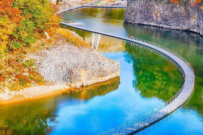 또한, 매년 10월이 되면 한탄강 위에 부교가 놓여 약 8km에 달하는 ‘한탄강물 윗길’이 열리며, 강 한가운데서 바라보는 주위의 단풍과 푸른 하늘은 철원의 숨은 비경으로, 마음을 사로잡는 특별한 경험을 선사합니다. 가을의 따스한 햇살 아래, 이곳에서 자연과 함께 가을 트레킹은 어떠세요?