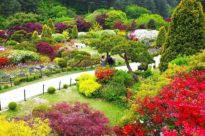 수목원은 다채롭고 특색 있는 정원들이 울창한 잣나무 숲 아래 펼쳐져 있어, 도시민들에게 안식처와 같은 삼림욕의 기회를 제공하는데요. 특히, 한국의 금수강산을 한반도 지형 모양으로 조성하여 꽃으로 표현한 ‘하경정원(Sunken Garden)’은 가을의 정취를 더욱 돋보이게 합니다.