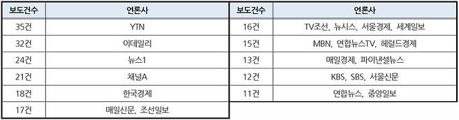 가장 압도적인 수치를 보인 곳은 YTN으로 35건의 보도를 냈습니다. 다음은 이데일리로 32건의 보도를 냈습니다. 앞서 민언련은 포털사이트 네이버에서 중앙일보가 윤석열 2차 체포영장 집행시기를 첫 보도한 1월 14일 오후 2시 32분부터 윤석열이 체포된 1월 15일 오전 10시 33분까지 20시간 동안 키워드 '윤측'으로 검색한 보도를 모니터링한 결과를 보고서로 발표한 바 있습니다. 이때도 이데일리는 19건의 '윤측' 받아쓰기 보도로 압도적 수치를 기록했습니다.