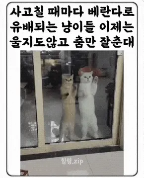 사고칠때마다 베란다로 유배되는 고양이들.gif