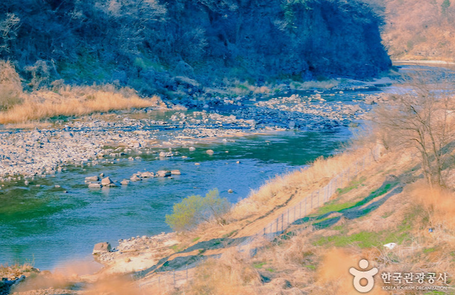 👉과거에는 징검다리를 건너야 했던 이 구간도지금은 새롭게 잔도길이 완공되어 사계절 언제나 안전하게 걸을 수 있습니다.걷는 내내 숲길, 오솔길, 데크길이 이어져 지루할 틈이 없고,특히 멍우리협곡은 ‘한국의 그랜드캐니언’이라 불릴 만큼 웅장한 풍경을 자랑해요.