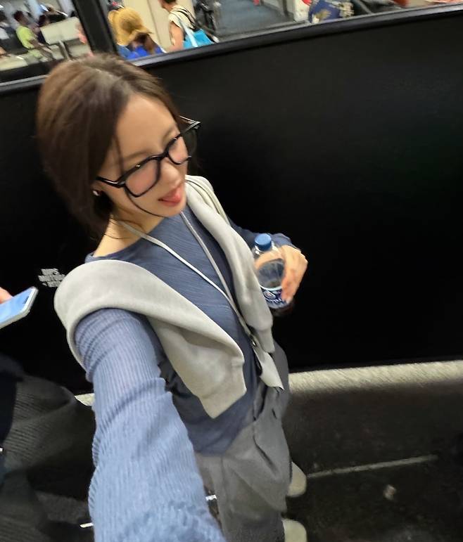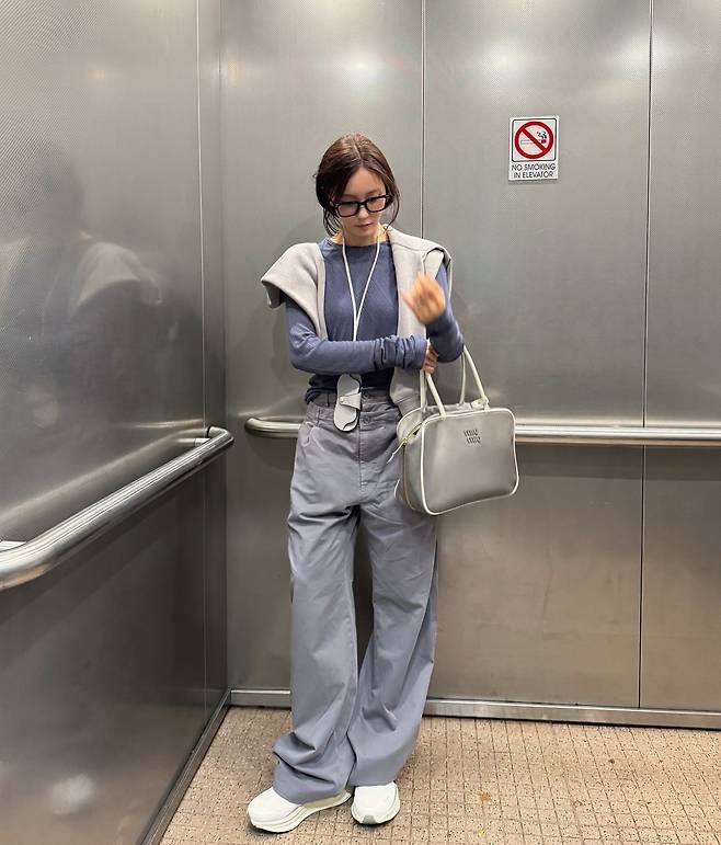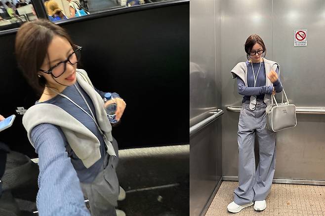 목에 건 안경집까지도 세련된 악세서리로 보일 정도라니, 활동적인 일상 속에서도 감각을 잃지 않는 모습이 매력적으로 느껴지네요.