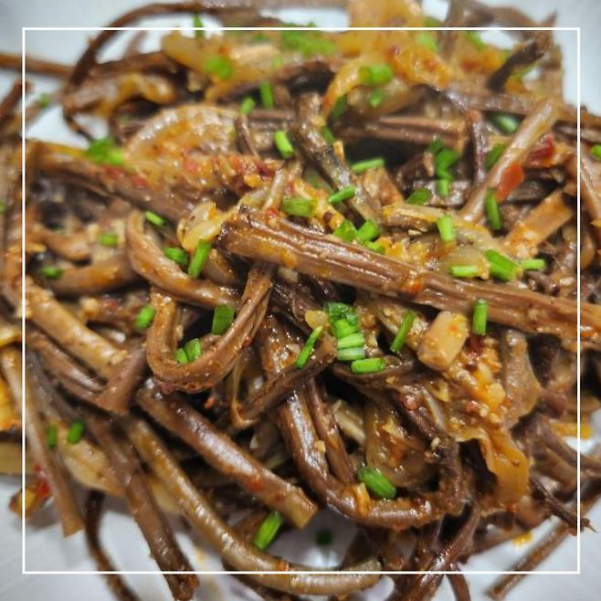 ⦁마른 고사리는 충분히 불리고, 데칠 때는 팔팔 끓는 물에 오래 삶아야 합니다.
