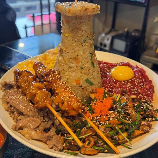 가장 눈길을 끄는 메뉴는 바로 첨성대 7종 세트! 푸드스타일리스트와 1년 넘게 고민하며 탄생한 이 시그니처 메뉴는 첨성대 모양의 게장 볶음밥을 중심으로 꼬막무침, 한우육회, 숯불 닭꼬치 등 7가지 다양한 음식이 한데 모여 입안뿐만 아니라 눈까지 즐겁게 합니다.