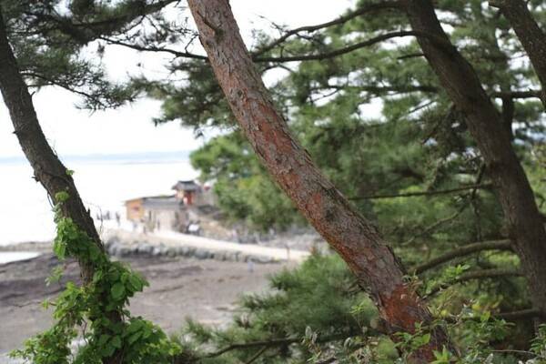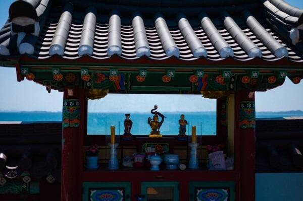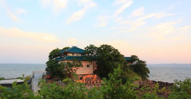 밀물에는 바다 위에 홀로 떠 있는 것처럼 보이지만, 썰물 시간에는 해저길이 열리면서 도보로 사찰까지 진입할 수 있지요.