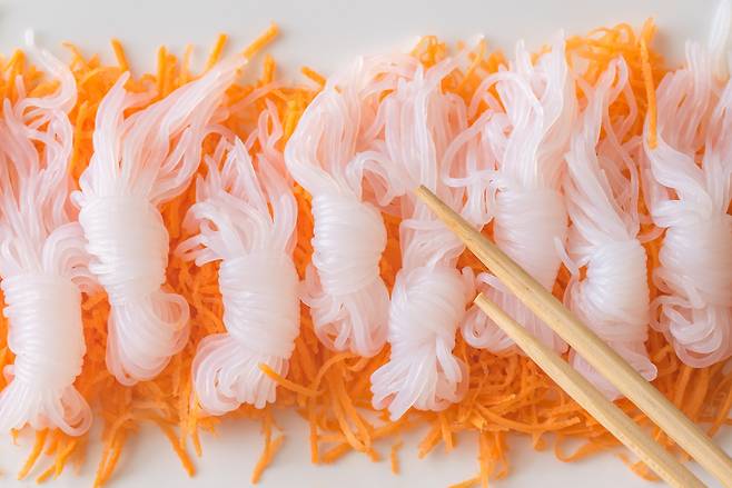 미역이나 다시마 등 해조류로 만든 면은 1인분(180g)당 약 9~11kcal로 열량이 거의 없고, 불포화 지방산, 아미노산, 식이섬유 등 각종 무기질이 풍부해요. 특유의 꼬들꼬들한 식감이 특징인데요. 비빔면이나 냉면 등 시원하고 매콤한 여름 음식과 잘 어울립니다.