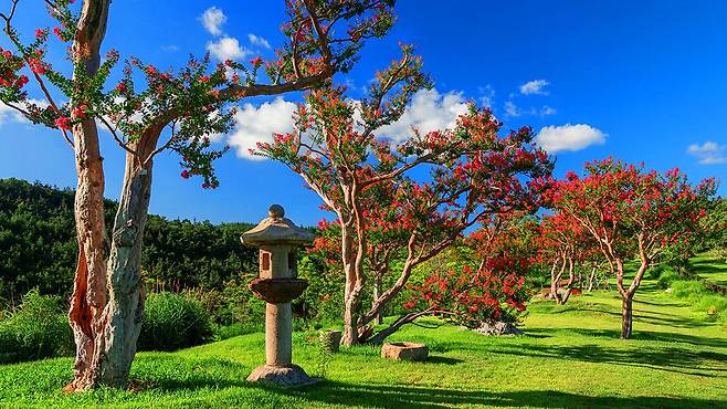 여름이면 어디서나 꽃은 피지만, 이곳의 여름은 다릅니다. 배롱나무꽃이 붉게 물들이는 순간, 정원은 더 이상 현실이 아닌 듯한 또 다른 세계로 변합니다.