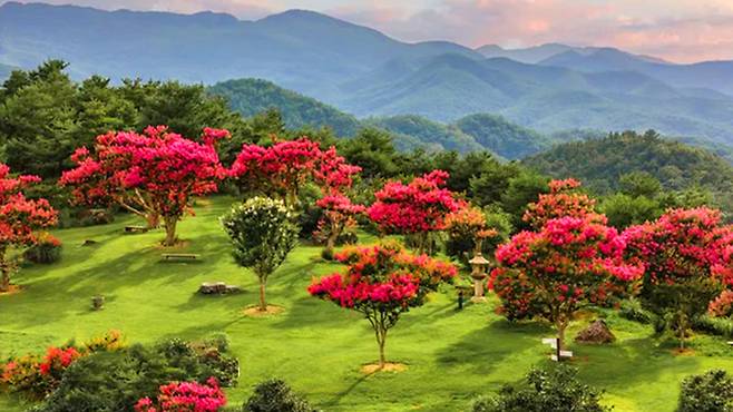전라남도 군위의 수목원 '사유원'에서는 8월 한 달간 배롱나무꽃 축제, ‘별유동천’이 펼쳐집니다. 꽃을 보는 것을 넘어, 생각을 걷는 정원, 자연이 건네는 사유의 시간.
