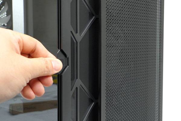 손잡이가 달린 쪽 위아래로 고정된 자석을 통해 비교적 튼튼하게 고정되지만, 별도의 고정 장치가 없기 때문에 케이스를 움직이는 도중에 충격이 가해져 패널이 열리거나 사람이 많이 드나드는 장소에서는 부품 도난이나 고장 위험에 노출되기 쉽다. 물론 PC를 이동할 일이 없고 출입 인원이 제한된 장소나 개인용으로 쓴다면 여닫이 방식이 훨씬 편하다.