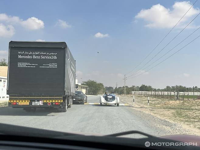 역시나 날씨는 무더웠다. 아랍에미리트의 성수기인 겨울임에도 불구하고 대기온은 30도가 넘었으며, 사방에서 불어오는 뜨거운 공기는 사람을 지치게 했다. 아부다비까지 이어지는 고속도로는 직선 구간만 약 50km가 넘는데, 말 그대로 사막을 가로지르는 코스다. 코너도 찾아볼 수 없으며 중간중간에 바람에 실려 온 모래의 무게를 이기지 못하고 넘어진 방호벽밖에 없을 정도로 삭막한 곳이다. 데저트 게이트부터 야스 마리나 서킷까지의 거리는 약 153km. 이 중 고속도로 구간이 3분의 2 정도이며, 그중 완전 직선 구간이 절반 정도다.
