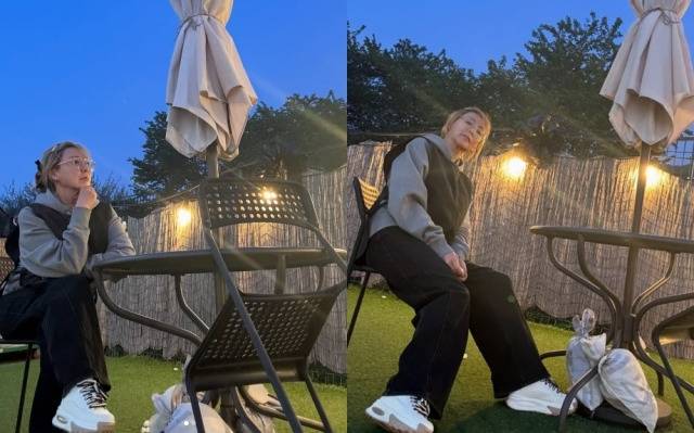 공개된 사진 속 이상아는 야외 테이블에 앉아 심란한 표정을 하고 있다. 금발 머리에 멋스런 안경을 끼고 후드티에 편안한 슬랙스를 입고 다리 한쪽을 내미는 사진도 보인다. 발바닥이 아프다는 표시로 발을 내민 것으로 보인다.