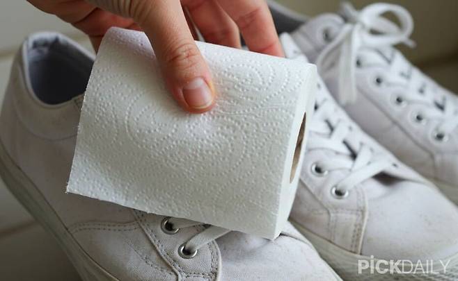 새로 세탁한 신발을 기껏 말렸더니, 누렇게 변색이 생겼다면 당황하지 말자. 세탁한지 오래 되지 않았다면, 변색을 없애는 방법이 있다. 변색된 부위에 물에 살짝 적신 휴지를 덮어두고 잘 밀착되게 해준다.