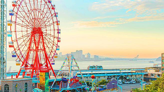 인천 월미도에는 지상 18m 높이에서 서해의 낭만을 오롯이 즐길 수 있는 특별한 열차가 있습니다.