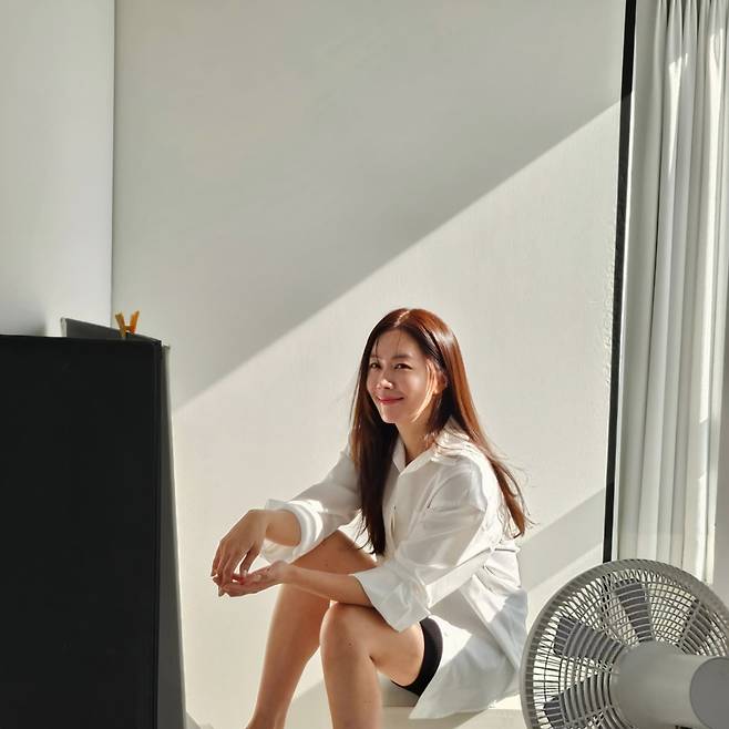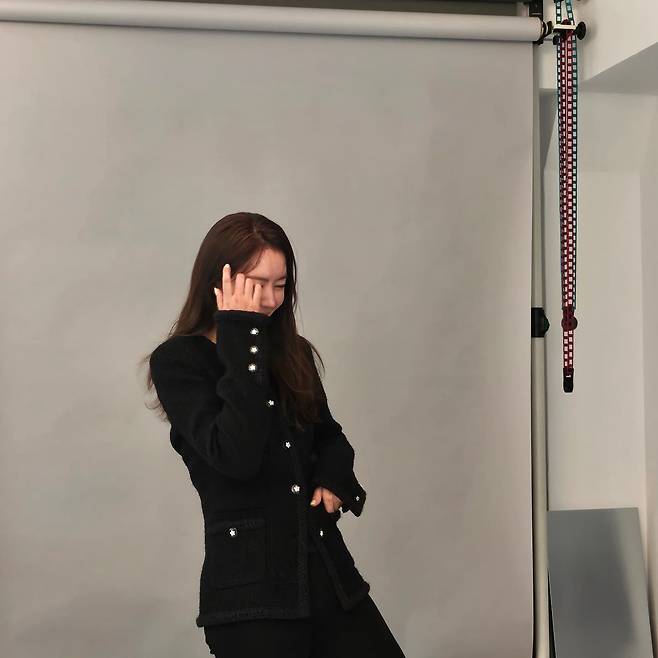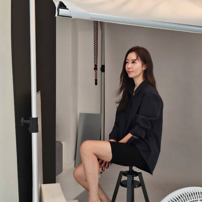 햇살이 비치는 스튜디오 안, 김유미는 단정하게 풀어내린 머리와 담백한 표정만으로 분위기를 가득 채우고 있었어요.