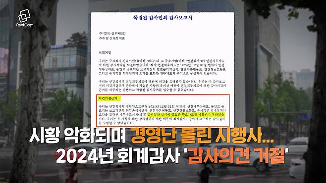 실제로 이 사업을 시행한 A사는 시황이 악화되면서 사정이 크게 나빠졌습니다. 2024년 회계감사에서는 자료를 제출하지 않아 감사의견 거절을 당할 정도죠.