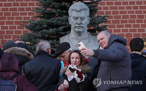 epa11788348 Russian Communist party members and supporters of former Soviet leader Joseph Stalin attend a ceremony to lay flowers at his grave on the Red Square next to the Kremlin Wall in Moscow, Russia, 21 December 2024. Russian communists are marking the 145th anniversary of Joseph Stalin's birthday. EPA/MAXIM SHIPENKOV