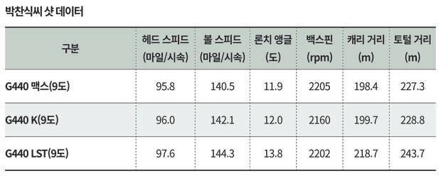 조 차장은 G440 K 헤드를 추천했다. 탄도를 낮추려면 저스핀의 LST 헤드가 적합하지만 볼 구질이 좌우로 날리기 때문에 관용성이 큰 모델이 더 적합할 것이라는 판단이었다. 그러자 볼의 발사각도는 16.8도로 낮아졌다. 토털 거리도 약 10m 증가했다.