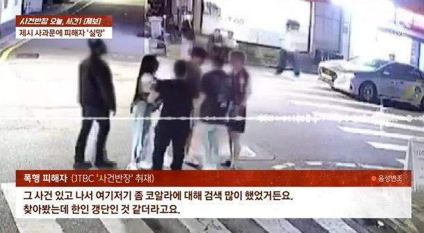 14일 JTBC '사건반장'에서는 "당시 미성년자인 피해자가 강남의 거리에 있던 제시를 보고 사진요청을 하다가 거절 당해 돌아가려고 하는데 갑자기 제시의 옆에 있던 남자 일행이 주먹으로 배를 치고 머리를 들이밀었다"며 "이후 옆에 있던 가해자가 팬의 얼굴을 가격한 사건이 있었다"며 당시 CCTV를 다시 한번 공개했습니다.