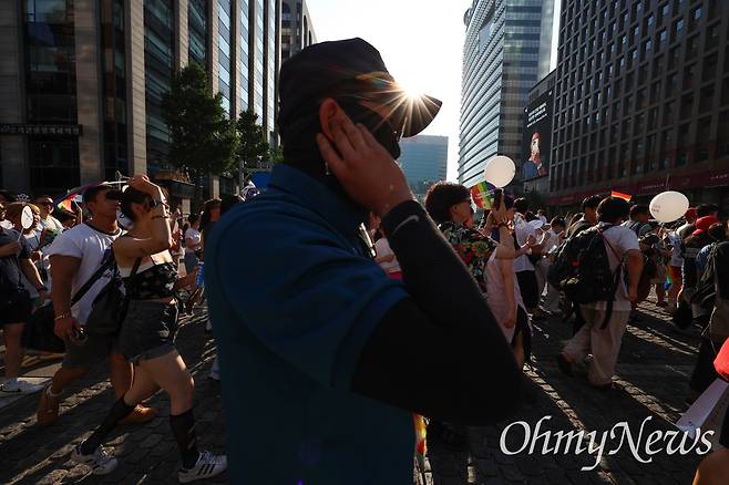 | ▲ 성소수자와 성소수자들의 인권과 권리를 지지하는 내외국인들이 참여하는 ‘피어나라 퀴어나라 - 제24회 서울퀴어문화축제’가 1일 서울 을지로 2가 일대에서 열렸다. 퀴어문화축제에 참석자들이 을지로 2가를 출발해, 명동역, 한국은행앞, 서울광장, 종로를 지나는 도심행진을 벌이고 있다. 퀴어축제를 반대하는 종교단체와 보수단체가 서울시청과 광화문네거리 주변에서 대규모 집회를 열고 있는 가운데 경찰이 퍼레이드 행렬을 따라가며 만일의 상황에 대비하고 있다. |