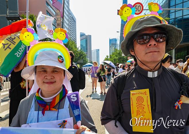 조계종 사회노동위원회에서 나온 스님들은 행진하는 성소수자들에게 오색실을 묶어주기도 했다. 수녀님들은 무지개 스티커를 붙여주기도 했다.