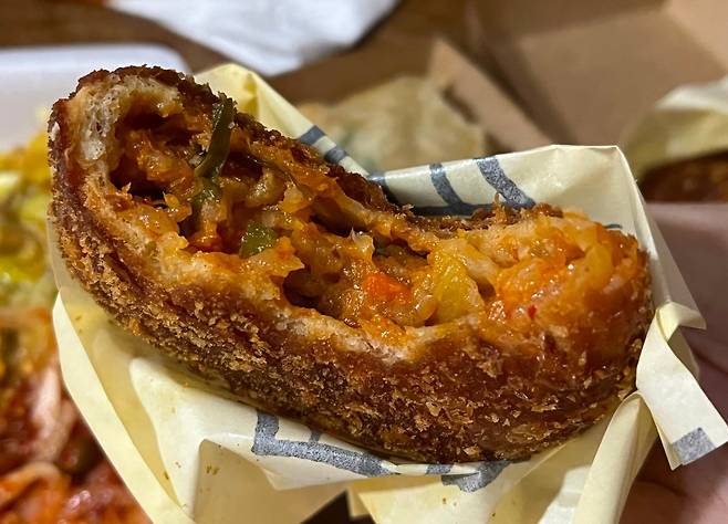 전주에서 꼭 먹어봐야하는 길거리 음식으로 손꼽히는 비빔밥 고로케. 바삭하고 쫄깃한 빵에 매콤달콤한 비빔밥을 넣은 한옥마을의 명물이다. 뜨거울 때 먹으면 더 맛있다.