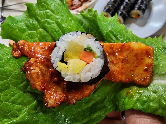 '진미집'은 상추에 불고기와 김밥을 싸먹는 이색 음식으로 유명한 노포다. 가게 중앙에 있는 연탄불에서 고추장 돼지불고기를 구워낸다. '식객 허영만의 백반기행'에도 소개된 맛집이다.