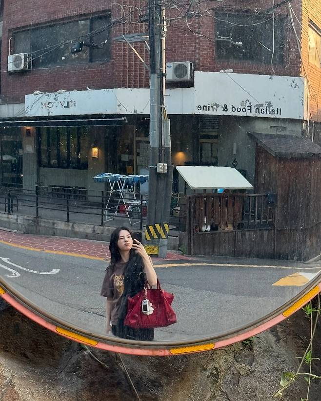 셋업 없이도 충분히 스타일이 완성되는 룩이라 일상에서도 가볍게 활용하기 좋고, 신시아 특유의 자연스러운 웨이브 헤어와 내추럴한 메이크업이 전체 분위기를 더 사랑스럽게 감싸줘요.
